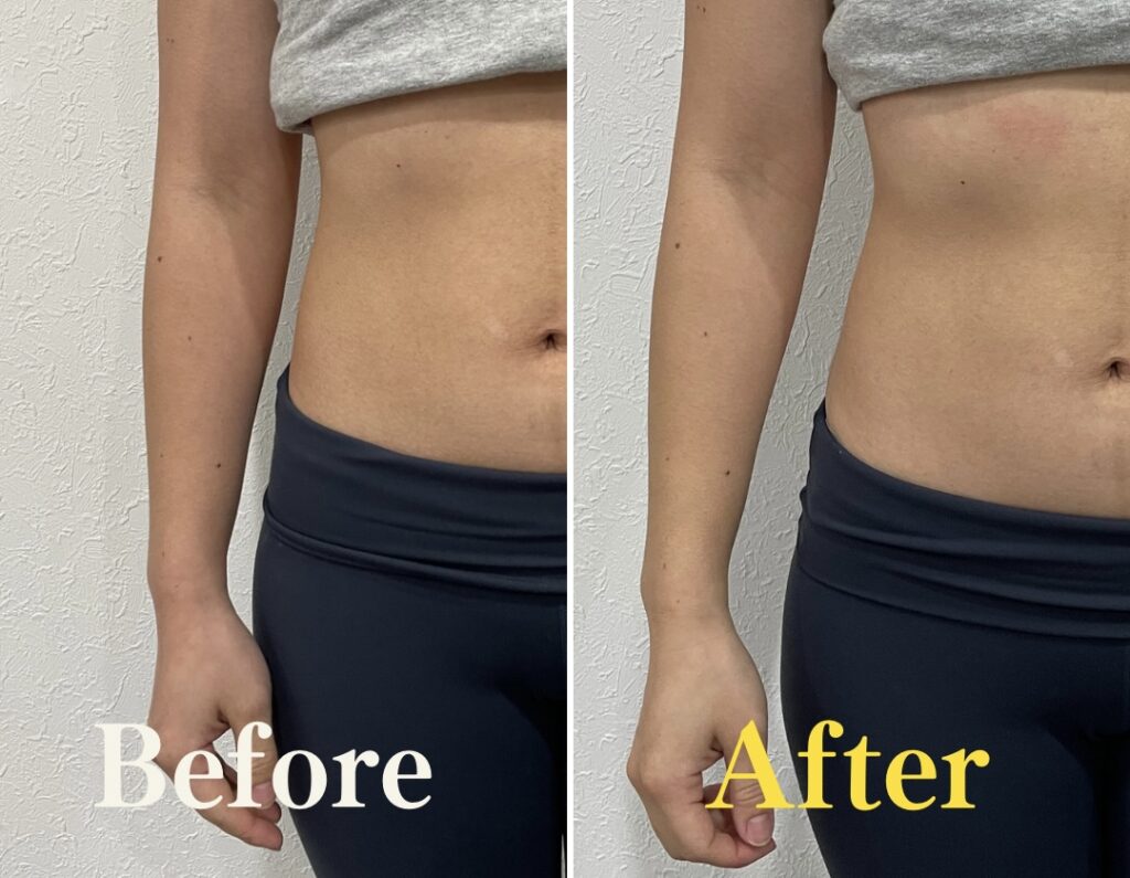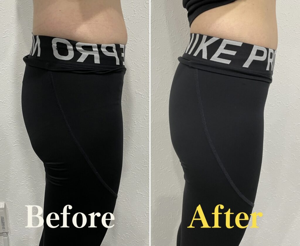 こちらのお客様はくびれトレーニングを希望していた女性です。トレーニング前とトレーニング後で比較してみました。
