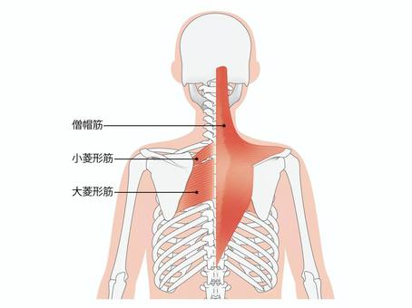 その中でも、特に着目したい筋肉は僧帽筋と菱形筋です。