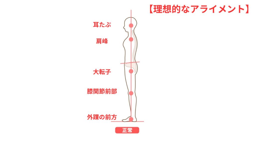 トレーナー・いっちー耳→肩→腰→膝→くるぶし”が、1本の直線に近ければOKです。